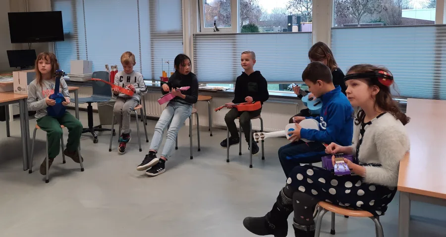 De eerste Talentweken stonden in het teken van muziek. Vanaf begin december hebben alle klassen op muzikale wijze aandacht besteed aan de feestdagen. Zo werden er Sinterklaas- en kerstliederen gespeeld met boomwrackers, een soort buizen die allemaal een andere toon hebben. Ieder kind speelde op een boomwracker met zijn eigen klank en kleur en moest hier geluid mee maken als de kleur van zijn of haar boomwracker in beeld kwam. Ook is er in verschillende klassen een bijpassende tekening gemaakt bij het luisterverhaal van Peter en de Wolf, het bekende muzikale sprookje van Sergej Prokofjev. Verder werd er in de pauzes met regelmaat gekeken naar muzikale programma’s, zoals lang leve de muziekshow, apennoten XL en méér muziek in de klas. Op woensdag 15 december kregen de kinderen vanaf groep oranje een heuse workshop ukelele van muziekleraar Michael. Tijdens deze workshop hebben de kinderen in een razend tempo geleerd hoe ze “Jingle Bells” moesten spelen. Wat een talent!