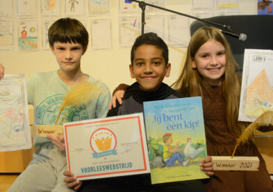 Op De Musketier wordt de Kinderboekenweek al een aantal jaar afgesloten met de voorleeswedstrijd en met de uitreiking van de Gouden Ganzenveren. Rajveer, Ivy...